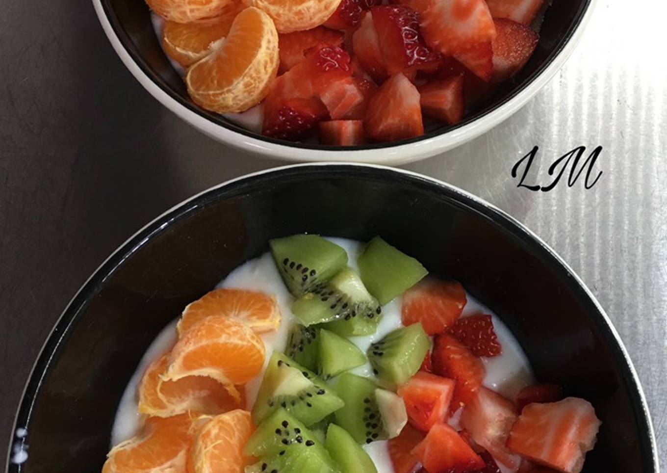 - Poner la fruta cortada encima del yogurt y listo. Servir.