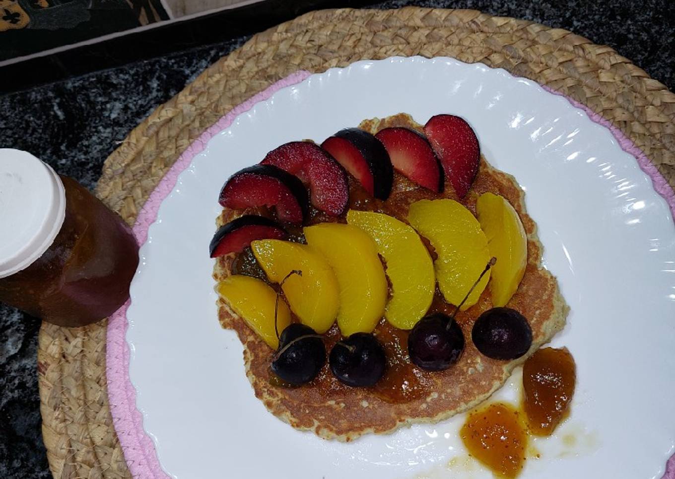 Unos minutitos y cuando está dorado lo das vuelta. Y ya esta! Súper fácil! - A mí me gusta con una pincelada de mermelada y las frutas que te gusten!