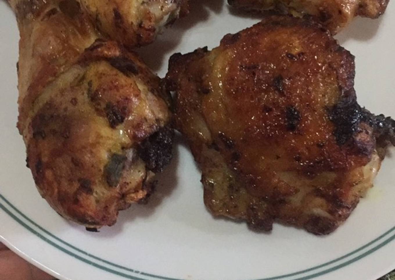 - Sazonar con el ajo, curry mostaza, aliños, sal y pimienta, no le quites la piel para que conserve mejor sus jugos.. la grasa que bota al cocinar queda en el fondo de la freidora